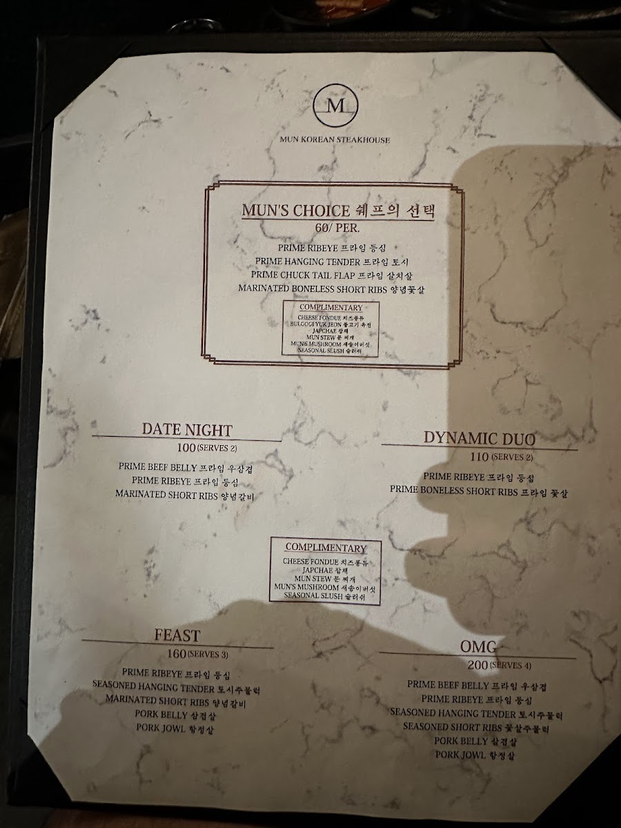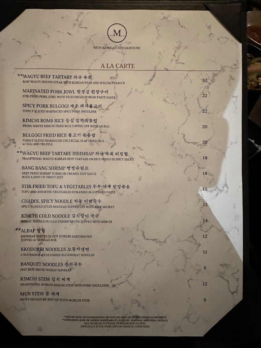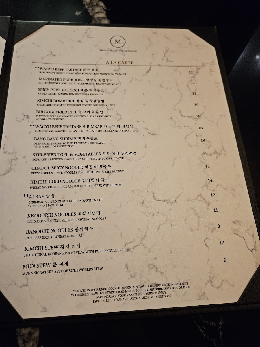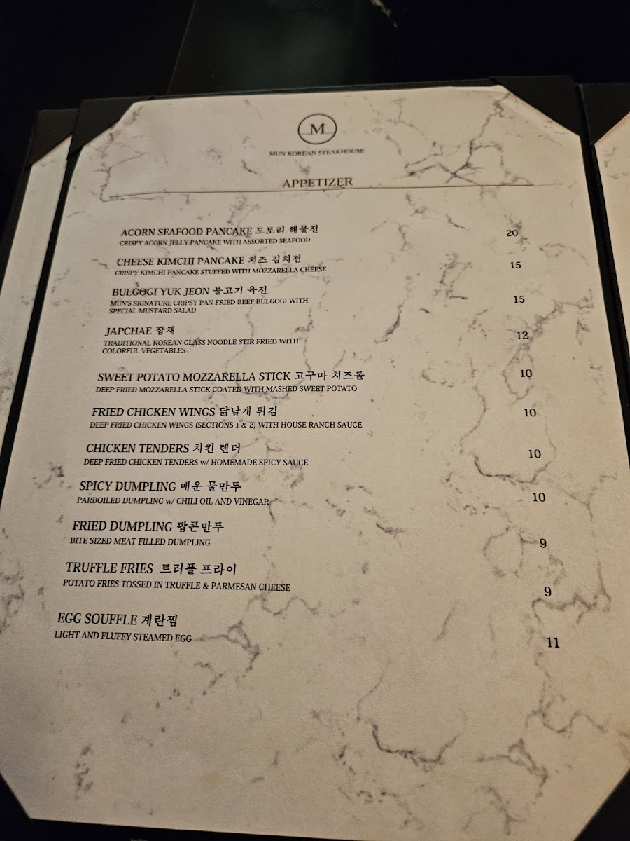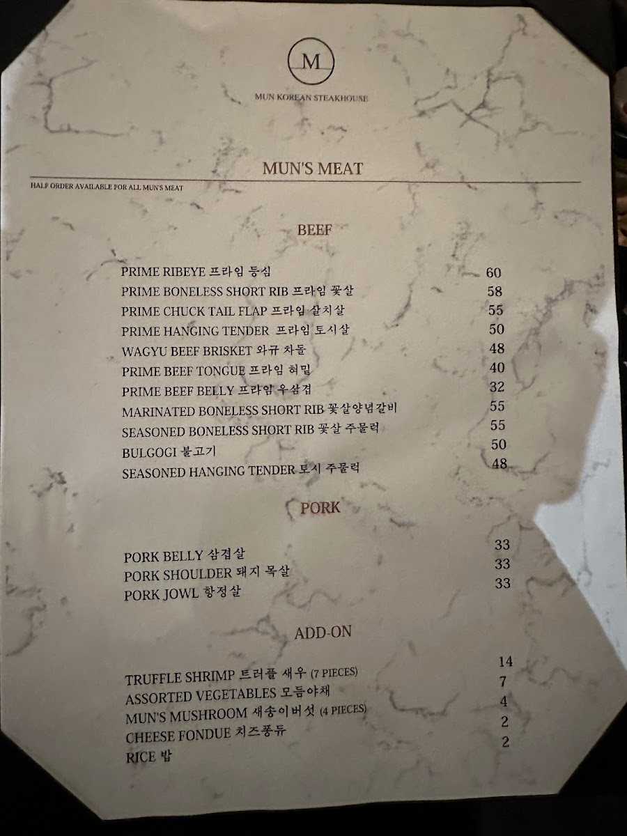 The ambiance at MUN Korean Steakhouse strikes a balance between cozy and vibrant. With an industrial-chic design, the space buzzes with energy, perfect for both festive gatherings and intimate date nights. As customer Christine Hsieh Lim expresses, it’s easily one of the best Korean BBQ experiences around, appealing to all types of diners. Whether you're gathering friends for a lively meal or sharing a meal with a loved one, the warm reception and attentive service heighten the dining experience immensely. Guests often commend the staff, with special mentions of personalized engagement from servers like Josh and Sam, whose considerate and cheerful approach contribute to the restaurant's welcoming aura.