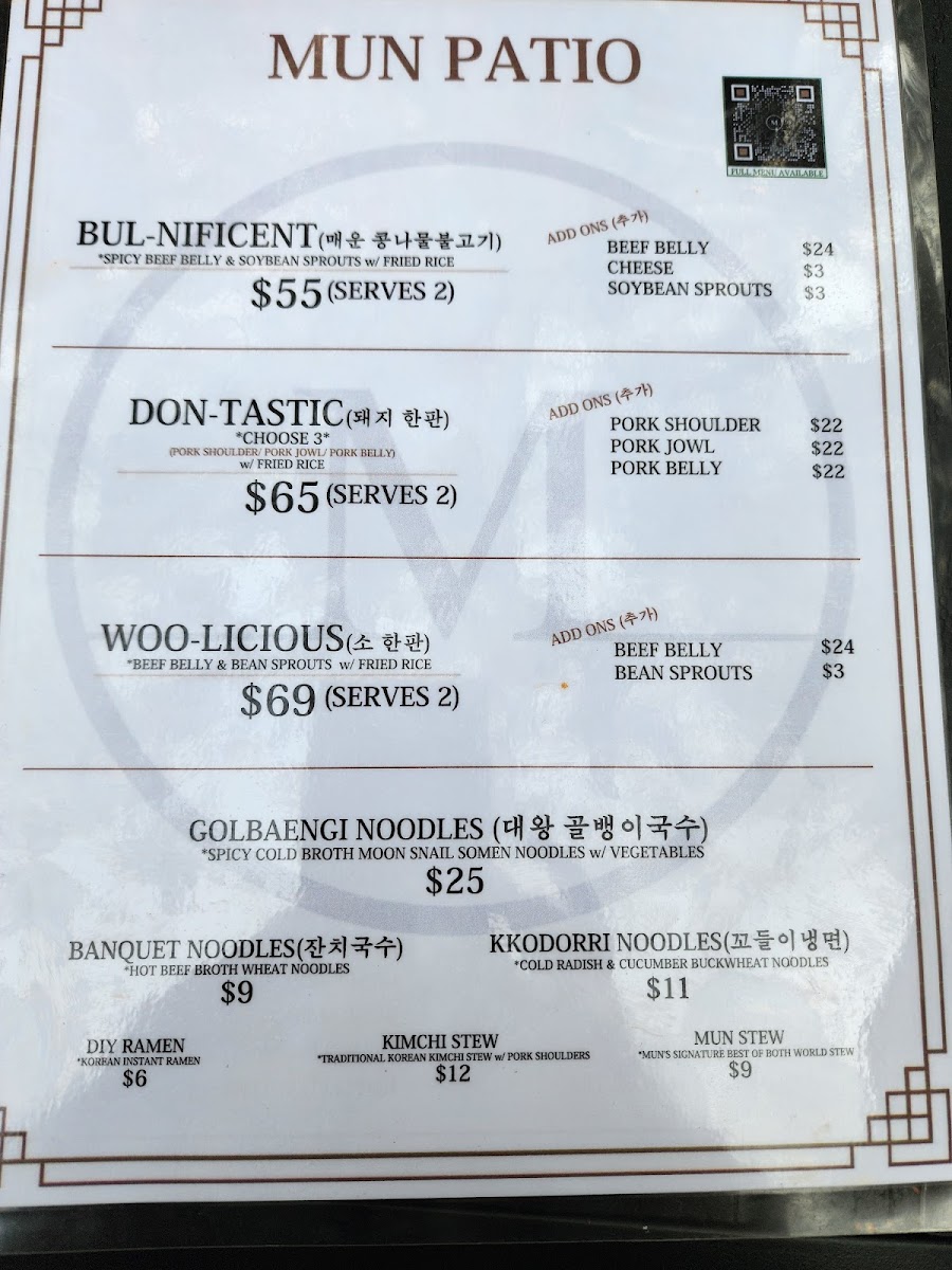Adding to the allure, the restaurant’s outdoor patio offers a picturesque backdrop for diners seeking a unique and enjoyable setting, further enhancing the delightful culinary journey at MUN. The diverse selection of banchan, or side dishes, adds layers of flavor to each meal, allowing you to delight in an exploration of taste that feels genuinely authentic.